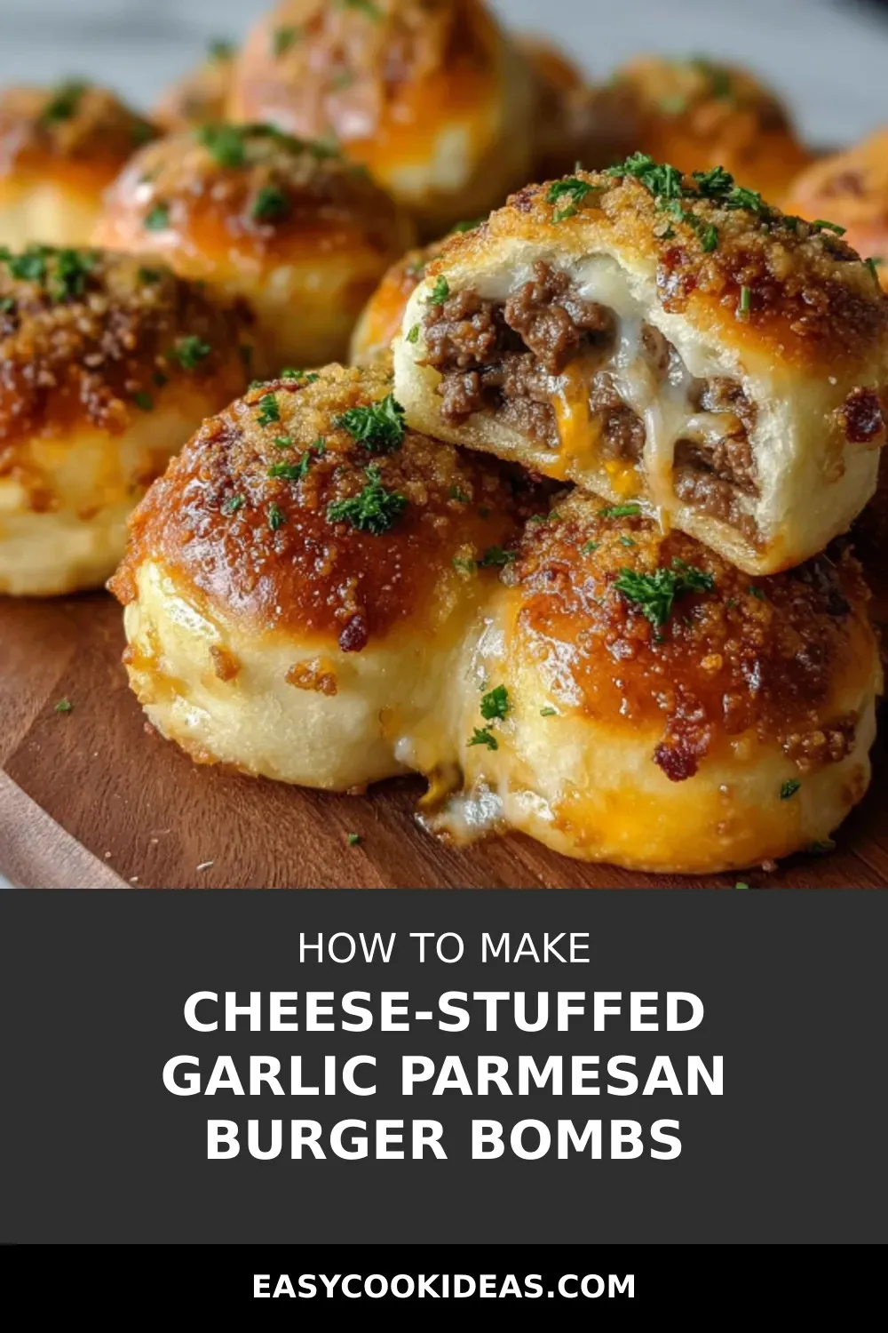 Cheese-Stuffed Garlic Parmesan Burger Bombs