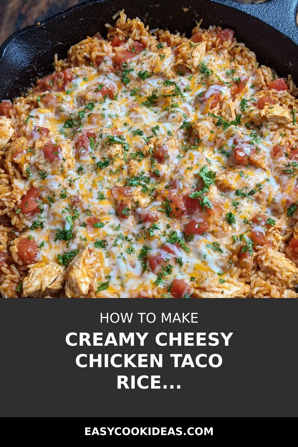 For a fun twist, serve the Cheesy Chicken Taco Rice in individual baked tortilla bowls. Simply line a muffin tin with small flour tortillas, bake until crispy, then fill with the cheesy chicken taco rice mixture. Top with extra shredded cheese, a dollop of sour cream, and a sprinkle of fresh cilantro for a cute and delicious presentation.