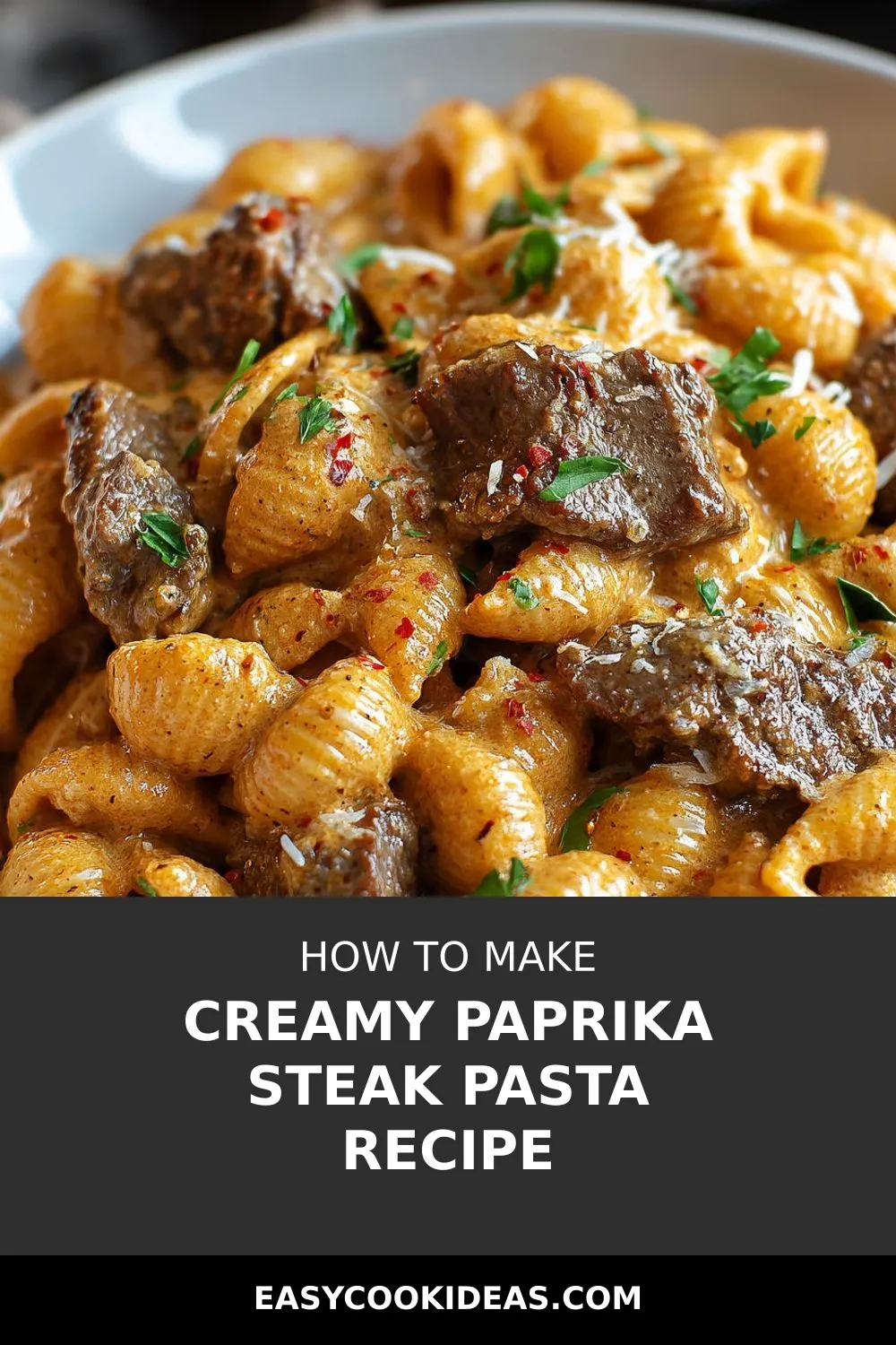 For a creative twist, serve the creamy paprika steak shells in individual baked pasta shells for an elegant presentation that’s perfect for a dinner party. Fill each shell with a generous amount of the creamy steak mixture, sprinkle with extra Parmesan cheese, and bake until bubbly and golden on top. Garnish with fresh parsley before serving for a pop of color and freshness.