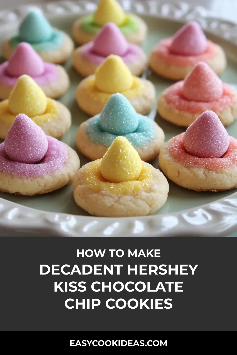 Indulge in the delightful world of springtime treats with these vibrant Hershey Kiss Cookies! Soft, buttery sugar cookies rolled in pastel sanding sugars and topped with a rich chocolate kiss, these cookies are as visually stunning as they are delicious. The perfect balance of tender cookie, smooth chocolate, and crunchy sugar coating makes each bite a delightful experience.