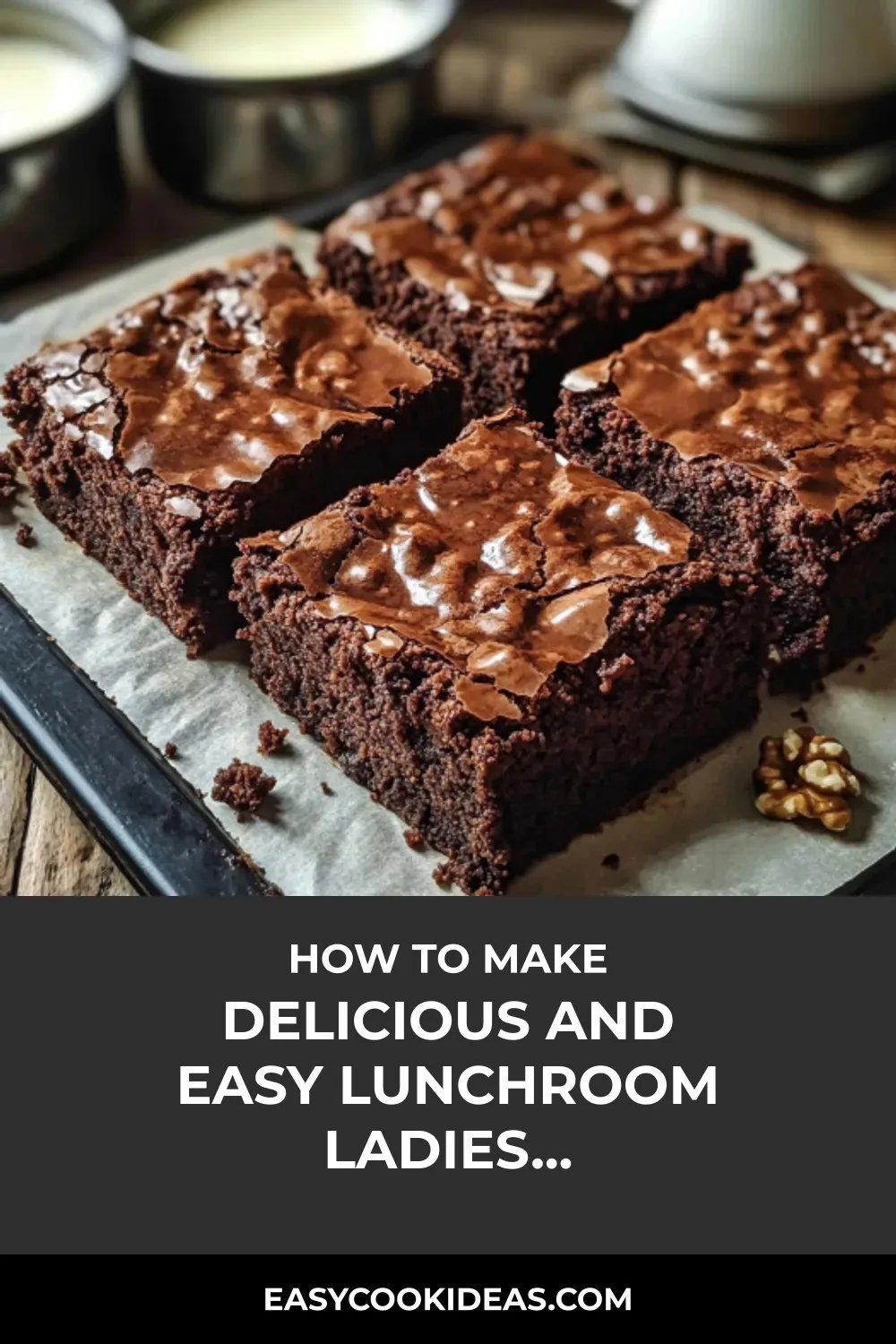 Indulge in the nostalgia of Lunchroom Ladies Brownies – a classic fudgy treat with chewy edges and a crackled shiny top.