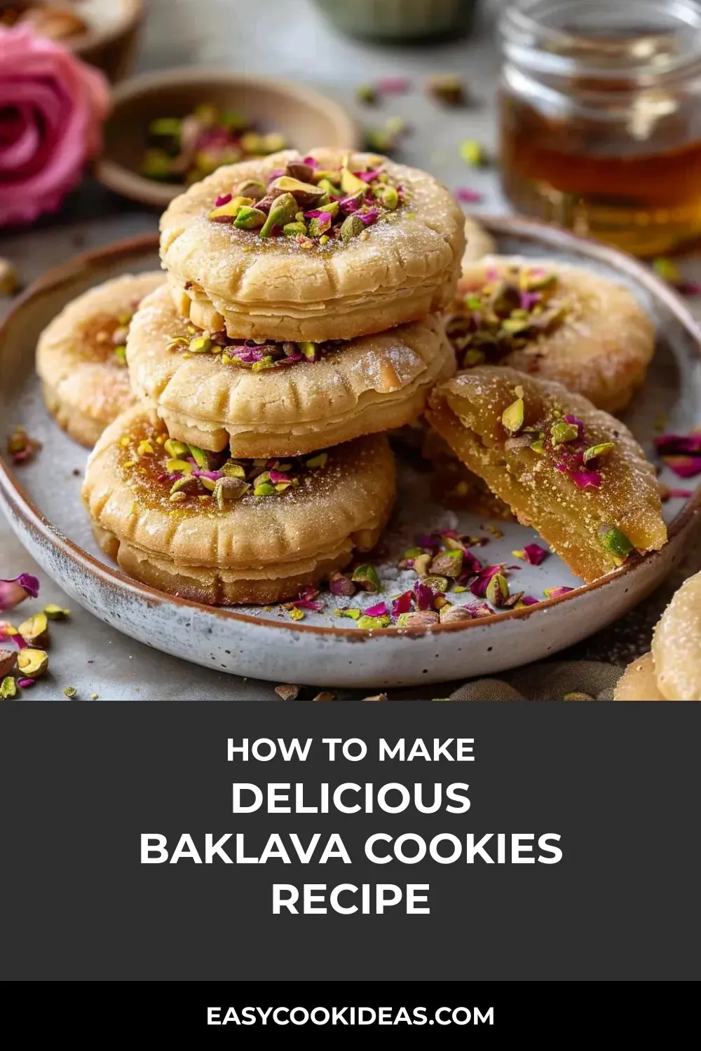 In conclusion, these Baklava Cookies are a delightful twist on a classic treat that will impress your friends and family with their rich flavors and irresistible crunch. The fusion of honey, pistachios, and delicate rose petals create a harmonious blend that is sure to become a favorite in your baking repertoire. Don’t be intimidated by their elegant appearance – these cookies are surprisingly simple to make and will leave your kitchen smelling like a cozy bakery.