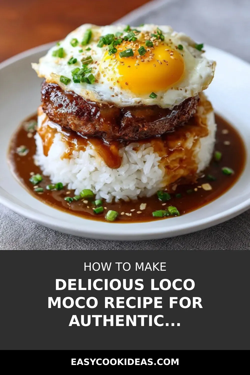 For a fun twist on serving Loco Moco, try assembling individual Loco Moco bowls for each guest. Start with a mound of fluffy white rice, top it with a juicy burger patty, a sunny-side-up egg, and generously drizzle brown gravy over everything. Garnish with a sprinkle of green onions for a colorful finish that will impress your family or guests.