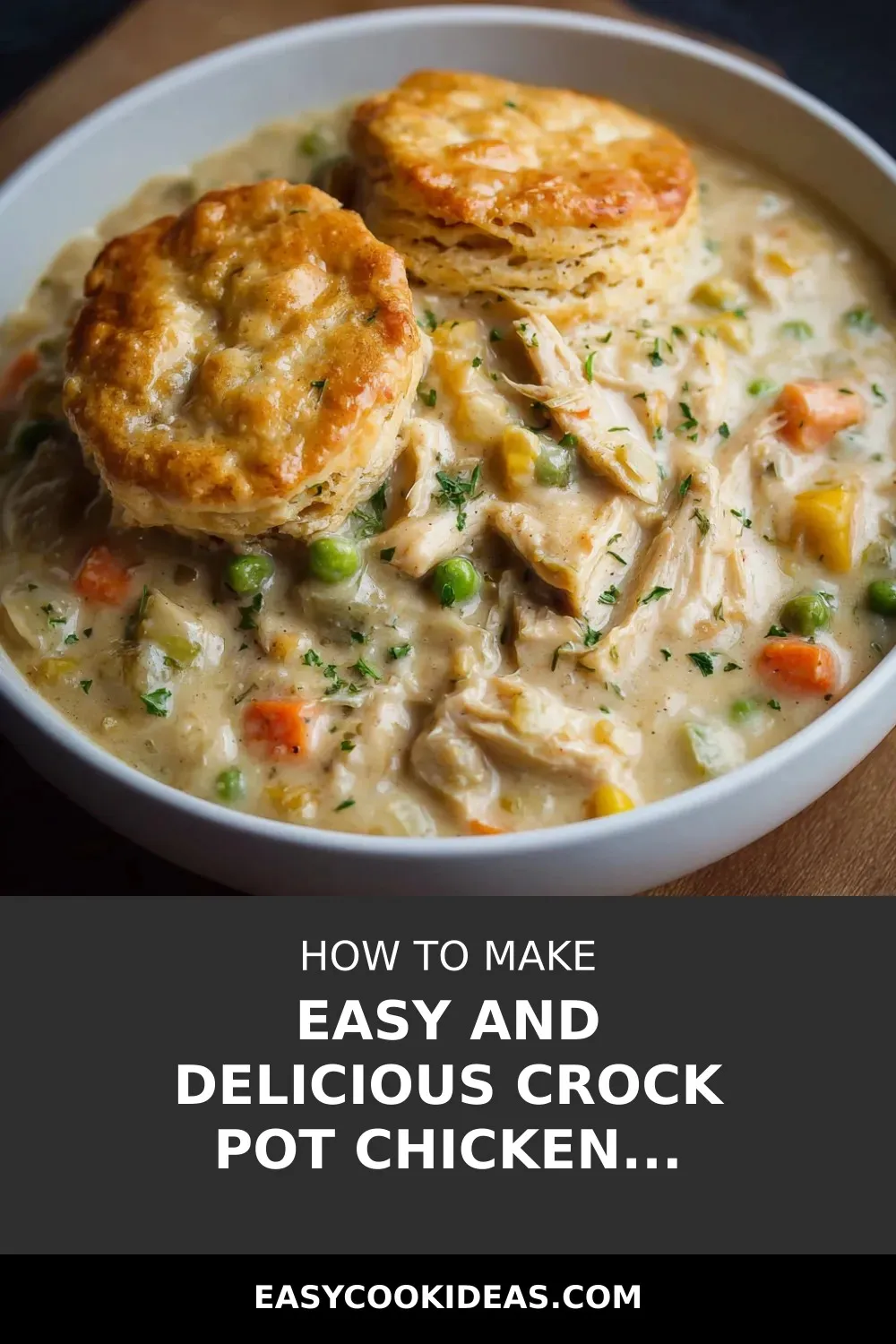 Indulge in a cozy Crock Pot Chicken Pot Pie with tender chicken, creamy gravy, and golden biscuit topping – a comforting family favorite.