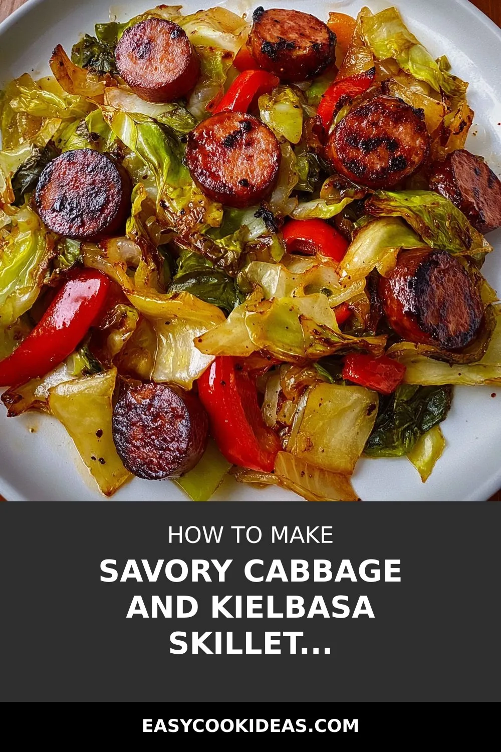 “Cozy cabbage and kielbasa skillet dinner: smoky sausage, tender cabbage, and zesty peppers create a one-pan comfort meal perfect for chilly weeknights.”