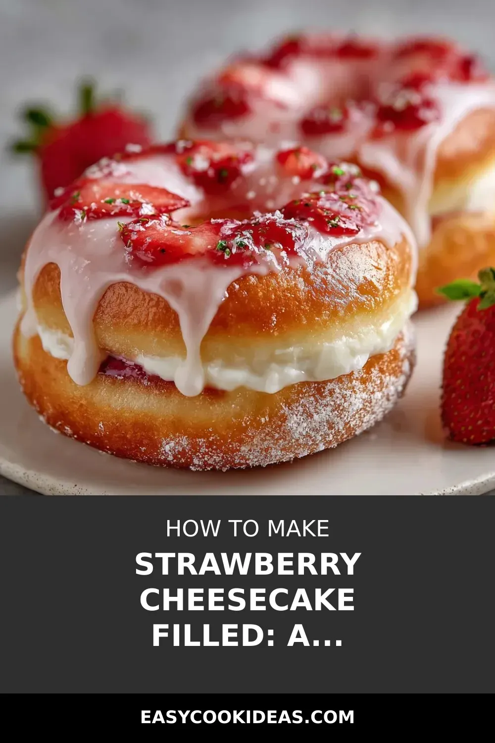 - Rich and Creamy Filling: Enjoy the delightful combination of rich, creamy strawberry cheesecake filling inside soft, homemade donuts.